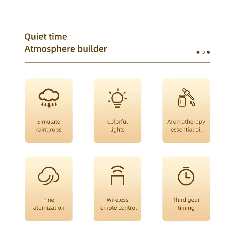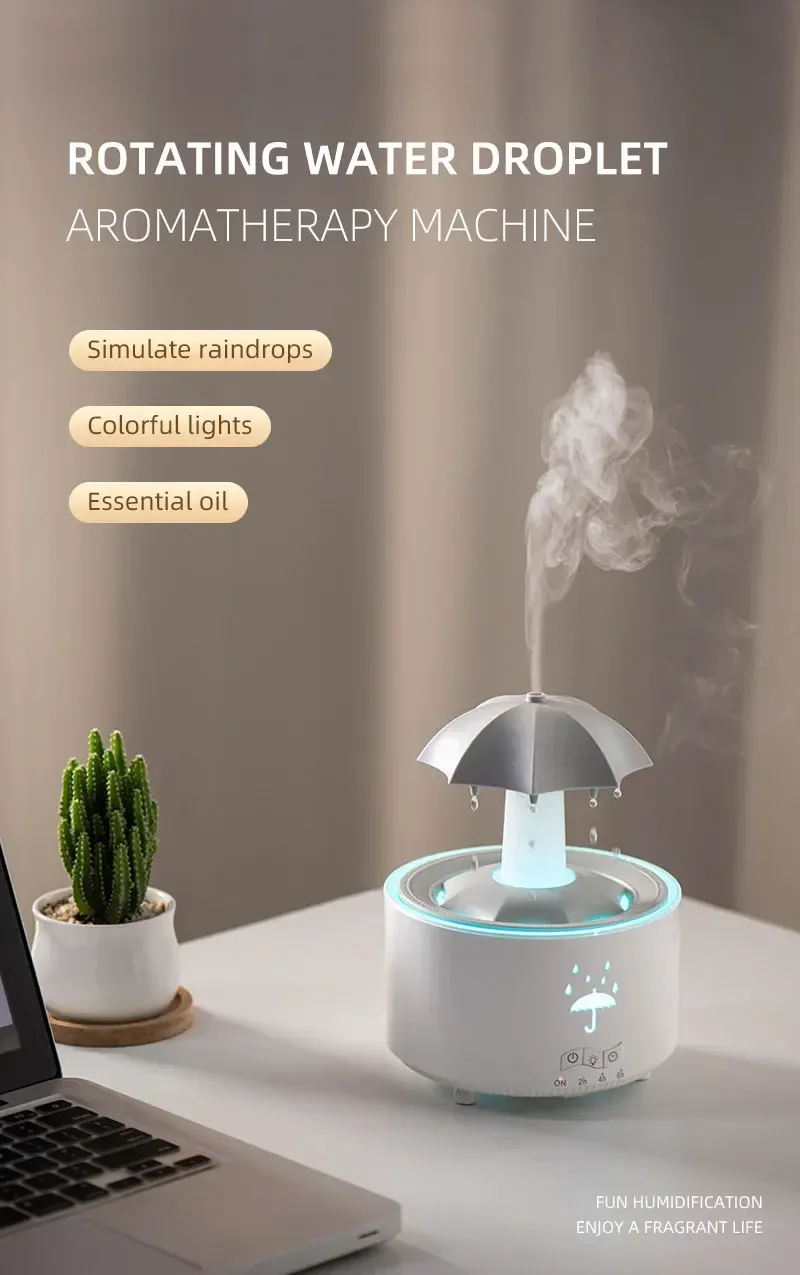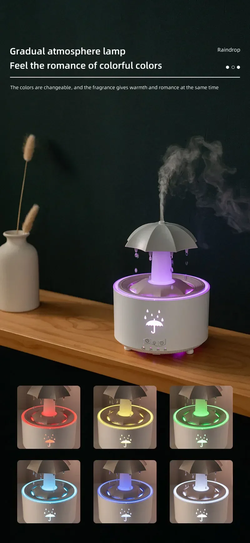 Diffuseur d’arôme d’huile essentielle de goutte de pluie, humidificateur de pluie à distance, veilleuse de bureau, fontaine, son de goutte d’eau pour la maison